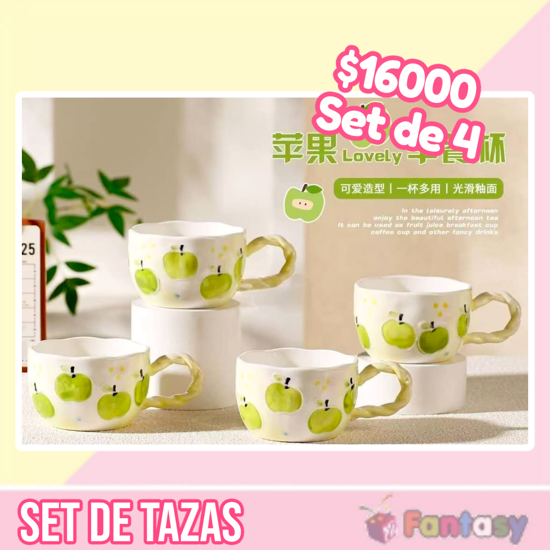 / Set Tazas Manzana Verde
